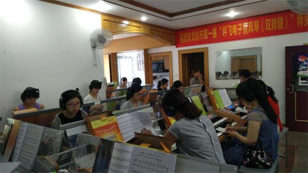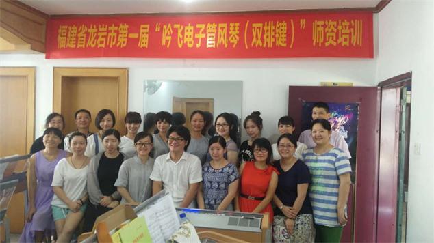 為了進一步了解福建省龍巖市電子鍵盤教學的發展狀況,加強與福建省龍巖地區電子鍵盤老師的教學交流,促進和推廣電子管風琴(雙排鍵)在福建省的普及教育,由吟飛科技(江蘇)有限公司、龍巖太陽琴行共同主辦的“吟飛科技電子管風琴(雙排鍵)龍巖市第一期教學交流活動”于2015年8月12-14日在龍巖太陽琴行舉行。這次活動由上海音樂學院雙排鍵專業碩士研究生畢業的蔡茅老師主講。活動期間蔡茅為福建省龍巖地區的鍵盤老師們詳細講解了“吟飛”電子管風琴(雙排鍵)的面板功能操作,上、下鍵盤演奏的技巧、腳鍵盤和上下鍵盤配合的應用等,使參加這次教學交流活動的鍵盤老師們對“吟飛”系列電子管風琴(雙排鍵)有了一次深入、細致的了解。也使參加培訓的十幾位鍵盤老師們對電子管風琴(雙排鍵)的普及教學和未來的發展有了進一步的認識。