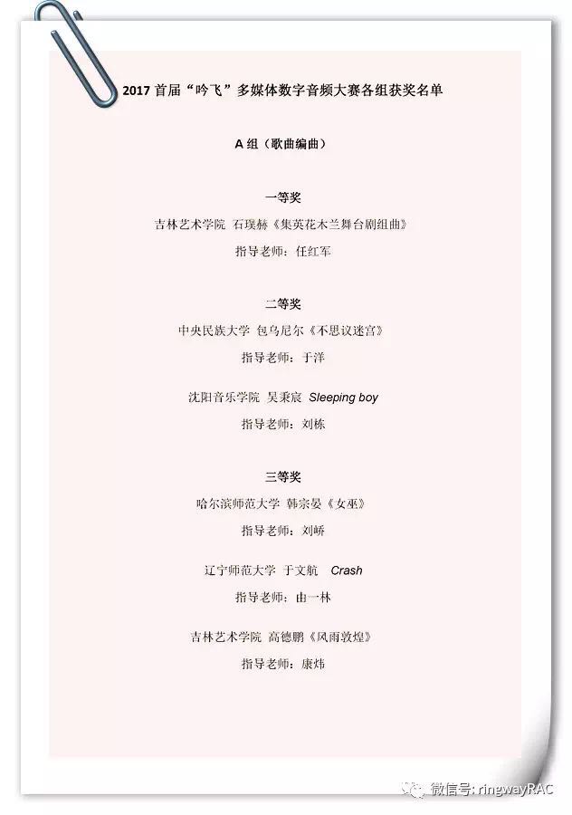 經過評委會嚴謹細致的選拔,脫穎而出了各組最后的一、二、三等獎和優秀獎。我們為獲獎者的精心創作,對音樂的嚴謹態度而喝彩;同樣為這些作品付出智慧和耐心指導的教師點贊!