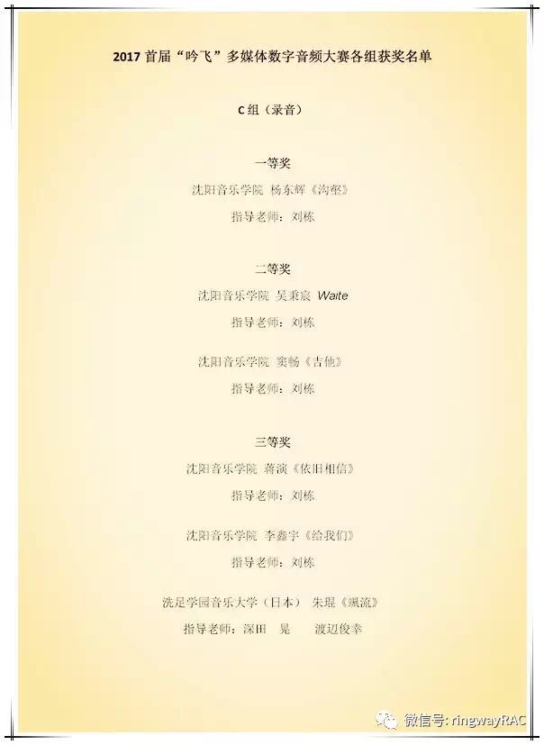 此次大賽是數字多媒體技術在錄音,配樂以及電子音樂創作領域的集中展示。沈陽音樂學院作曲系吟飛電子音樂教學中心成立后首次參與到大賽中來,希望能為電子音樂的發展出一份力。