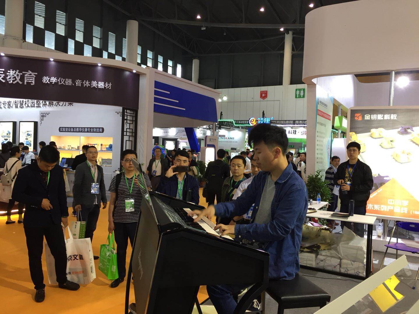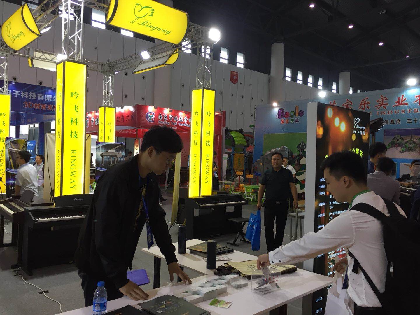 本屆教育裝備展我公司展出了多款智能電子琴、電鋼琴、電子鼓和電子管風琴,跟上了現代化智能教育的步伐,獲得了業內及社會各界人士的一致好評。與會領導到我公司展位來了解產品及公司動向,充分肯定了吟飛公司對教育事業做出的貢獻。展會上,全國各地的教育裝備企業前來洽談合作。